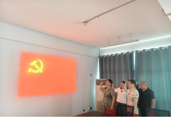 活动中,全体党员整齐肃立,面向党旗,高举右拳,在支部书记王洪敏的领誓下,用铿锵有力的声音重温入党誓词。誓言字字千钧,不仅强化了党员干部的理想信念,更唤醒了大家的责任担当。
