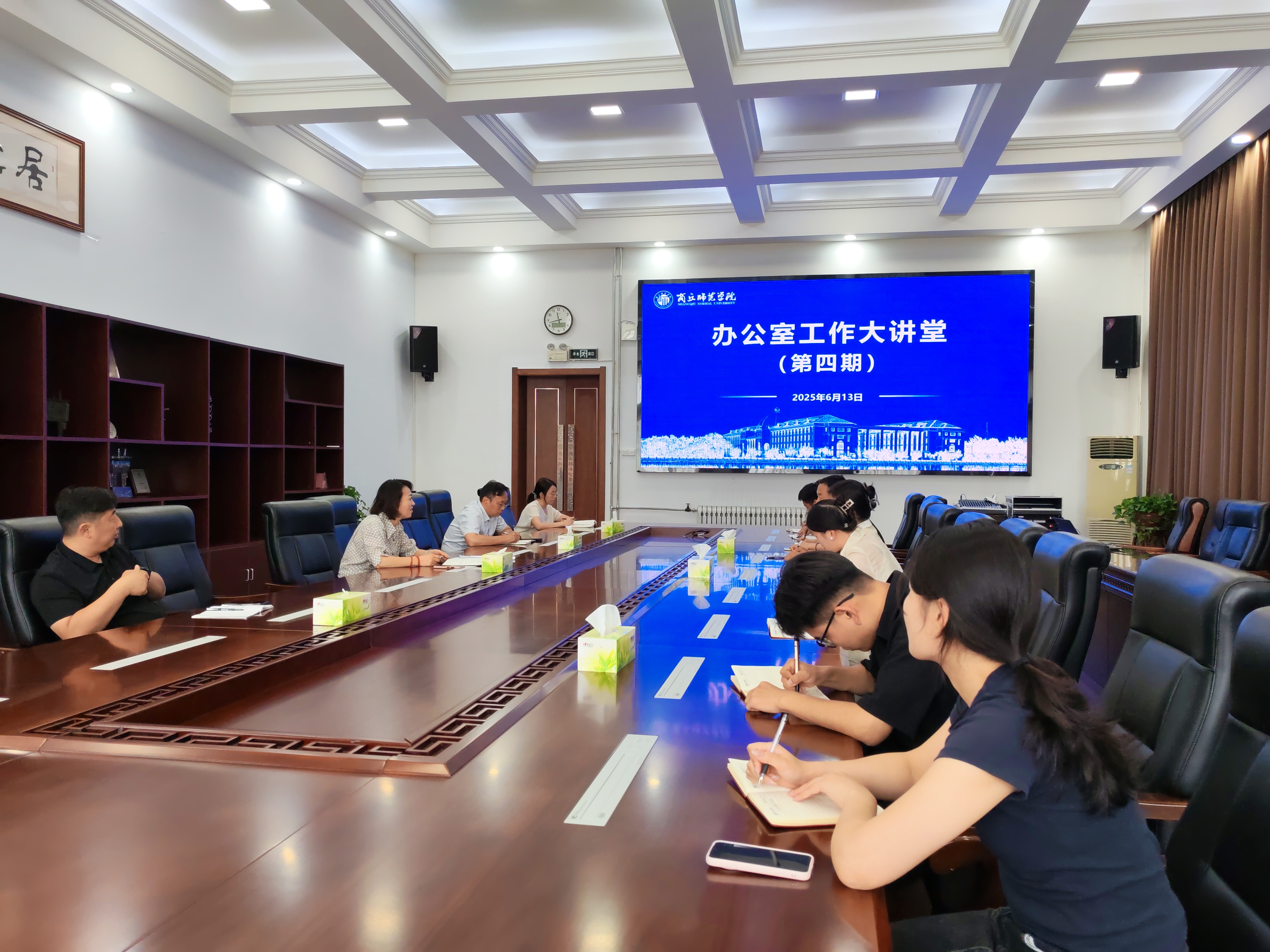 2025年6月13日,党政办公室全体人员齐聚320会议室,成功召开第四期办公室工作大讲堂。本次讲堂由贾丽主任主持,三位副主任分别领学核心内容,深入探讨办公室工作需摒弃的“四怕”、需处理好的“四个关系”以及需努力做到的“五应”,旨在提升服务效能与干部素养。