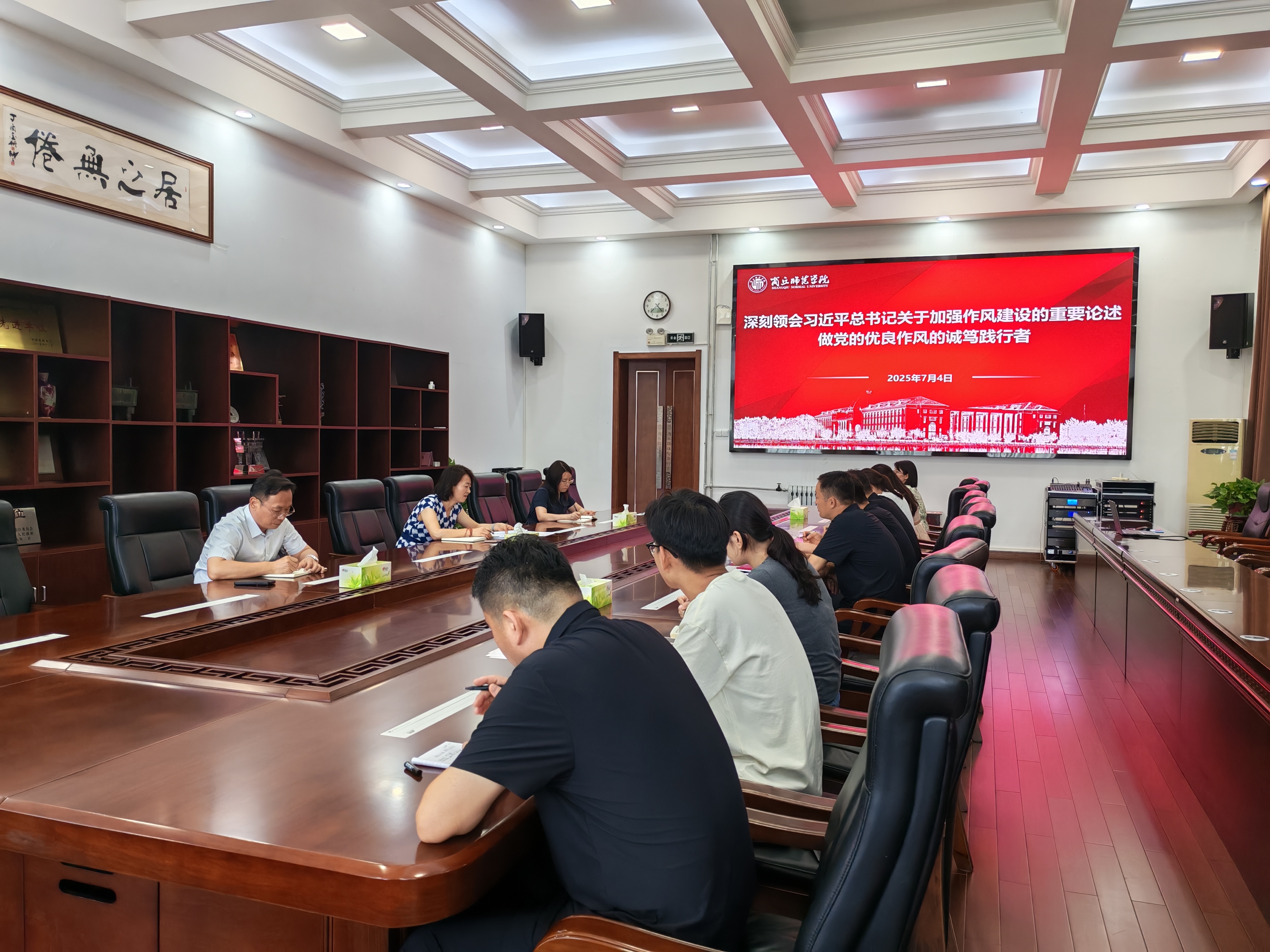 为扎实开展深入贯彻中央八项规定精神学习教育,进一步巩固和拓展作风建设成果,7月4日下午,党政办公室在归德楼320召开专题学习会议。党支部书记贾丽以“深刻领会习近平总书记关于加强作风建设的重要论述,做党的优良作风的诚笃践行者”为题,为办公室全体党员讲授专题党课。