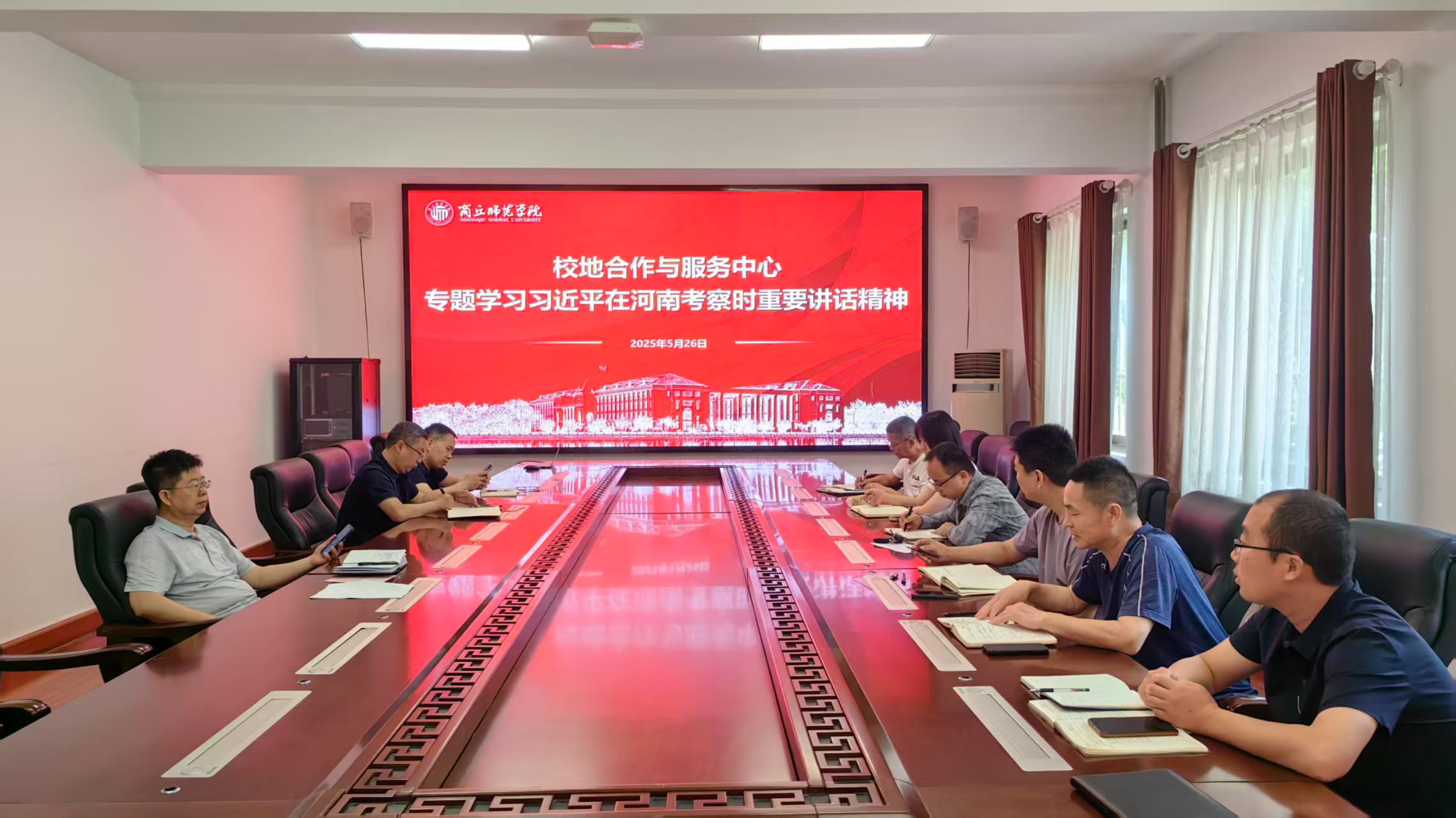 5月26日,校地合作与服务中心在归德楼102会议室开展政治理论学习,专题学习习近平在河南考察时重要讲话精神。中心全体教职工参加,中心主任陈华主持。