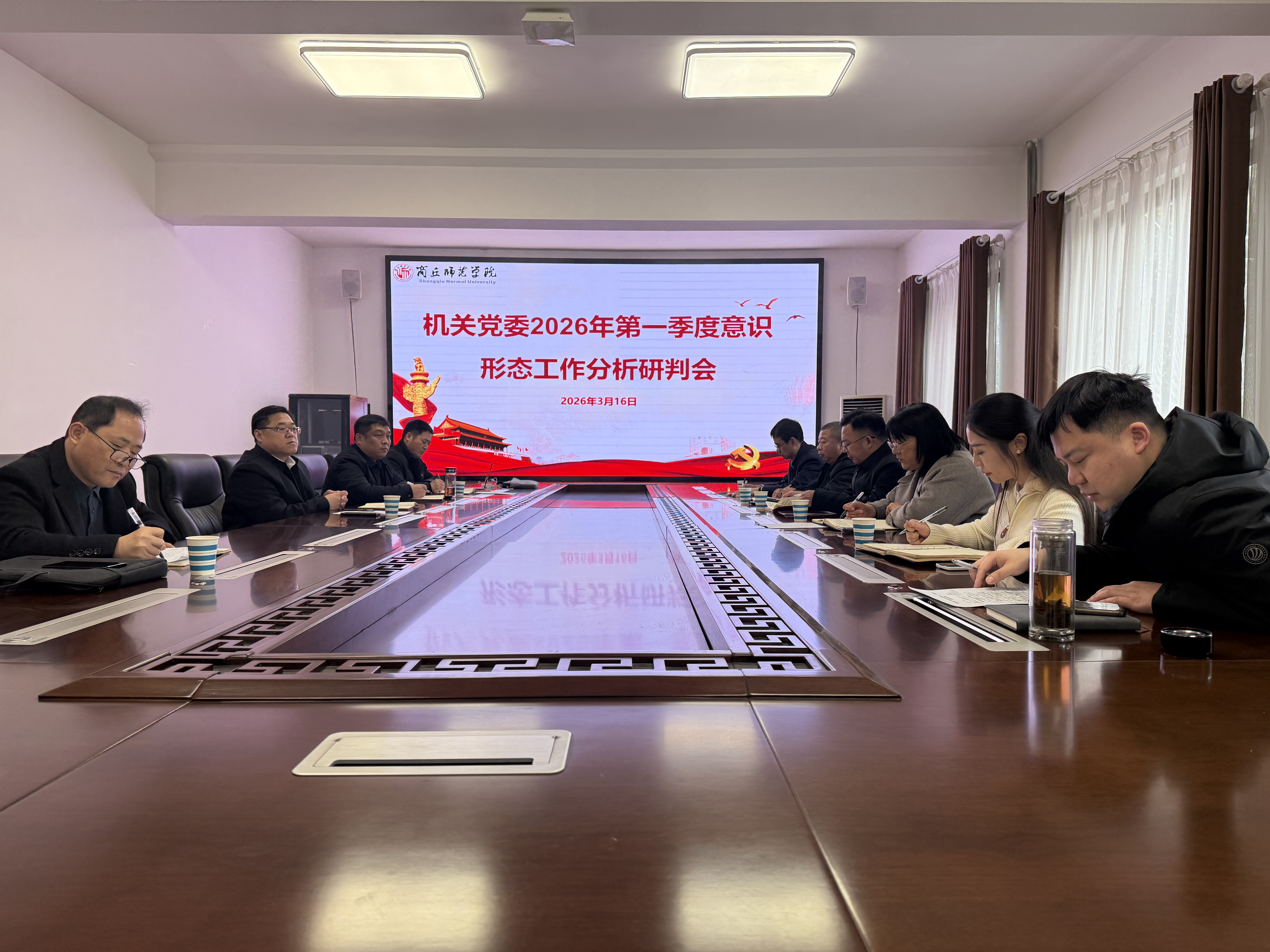 3月16日,机关党委在归德楼召开2026年第一季度意识形态工作分析研判会。会议由党委组织部常务副部长、机关党委负责人沈振华主持。机关相关党支部负责人与会。